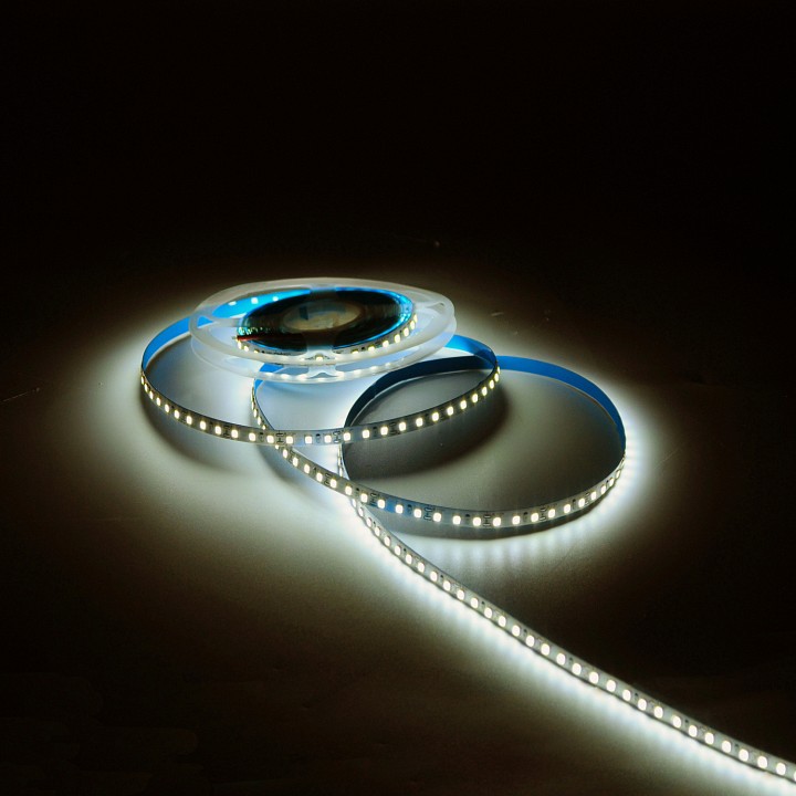 гибкая светодиодная лента 5 м в блистере:, клейкое основание с защитной пленкой, цвет основания: белый, тип светодиодов: SMD2835, размер светодиодов: 2.8х3.5 мм, модуль резки: 50 мм, при выборе блока питания следует учитывать общую мощность ленты или нескольких лент, соединенных вместе, с добавлением 10-20 % запаса по мощности