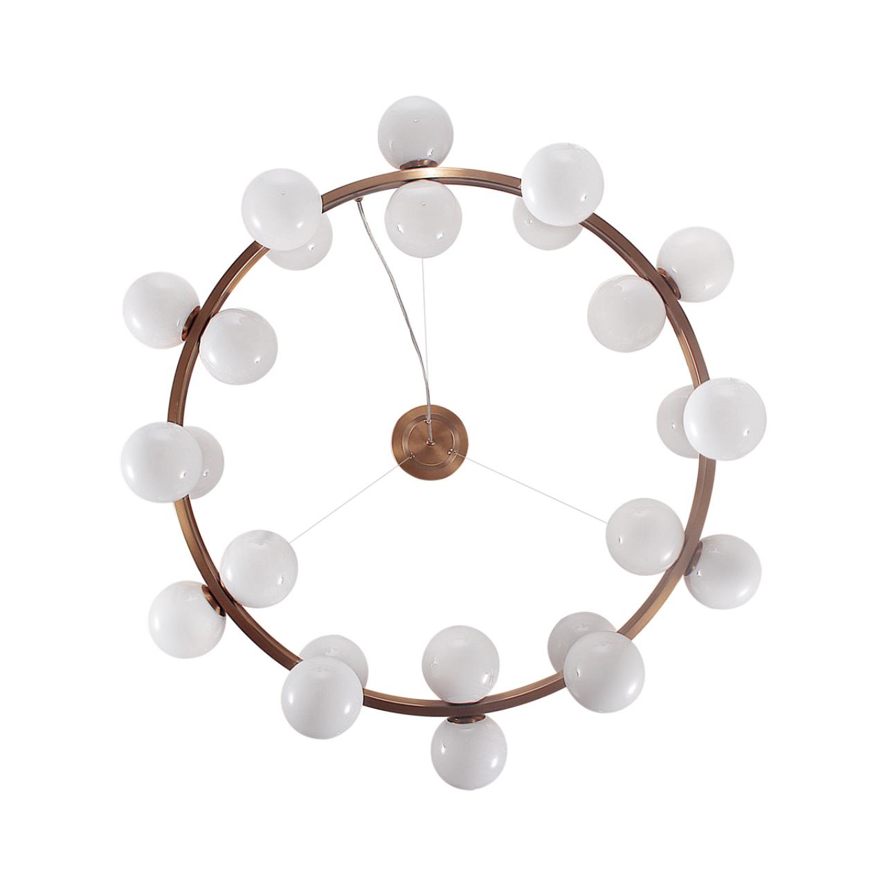 Образ шаров в линии Magia создает воздушную атмосферу. Белое глянцевое молочное стекло выполнено с эффектом облачного узора, придает визаульное сходство светильнику с алебастром.