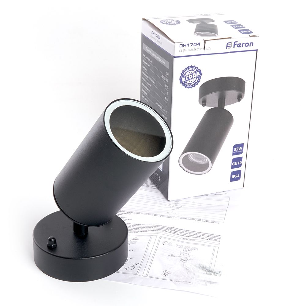 Светильник садово-парковый Feron DH1704, на стену, GU10 230V, черный (на стену), 48322