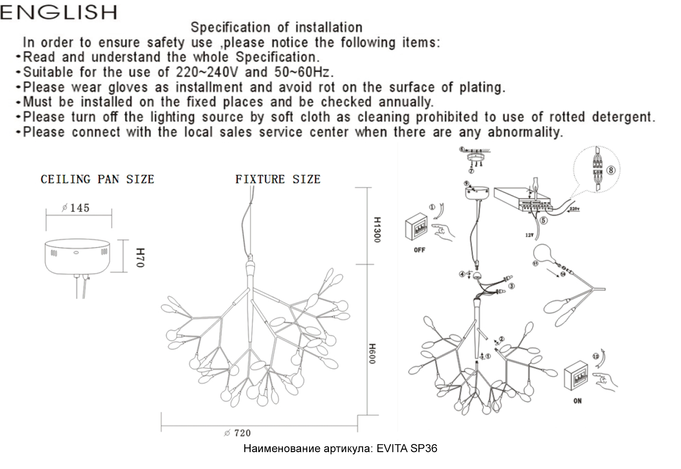 | Альтернативное название | Светильник подвесной Crystal Lux EVITA SP36 BLACK/TRANSPARENT, 1690/236 |