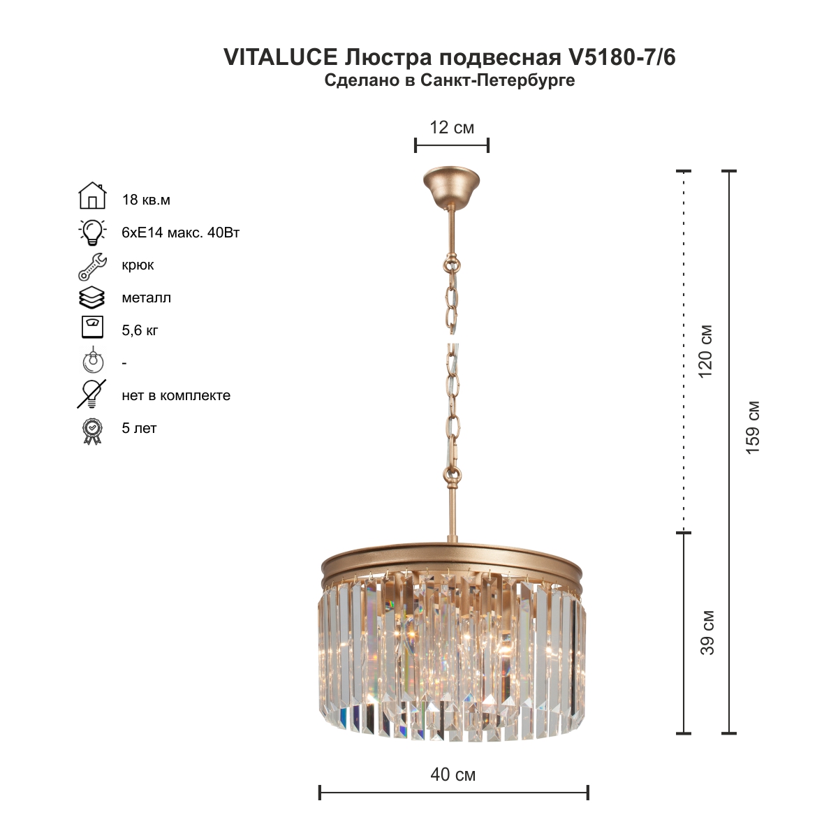 | Альтернативное название | Подвесная люстра Vitaluce V5180 V5180-7/6 |