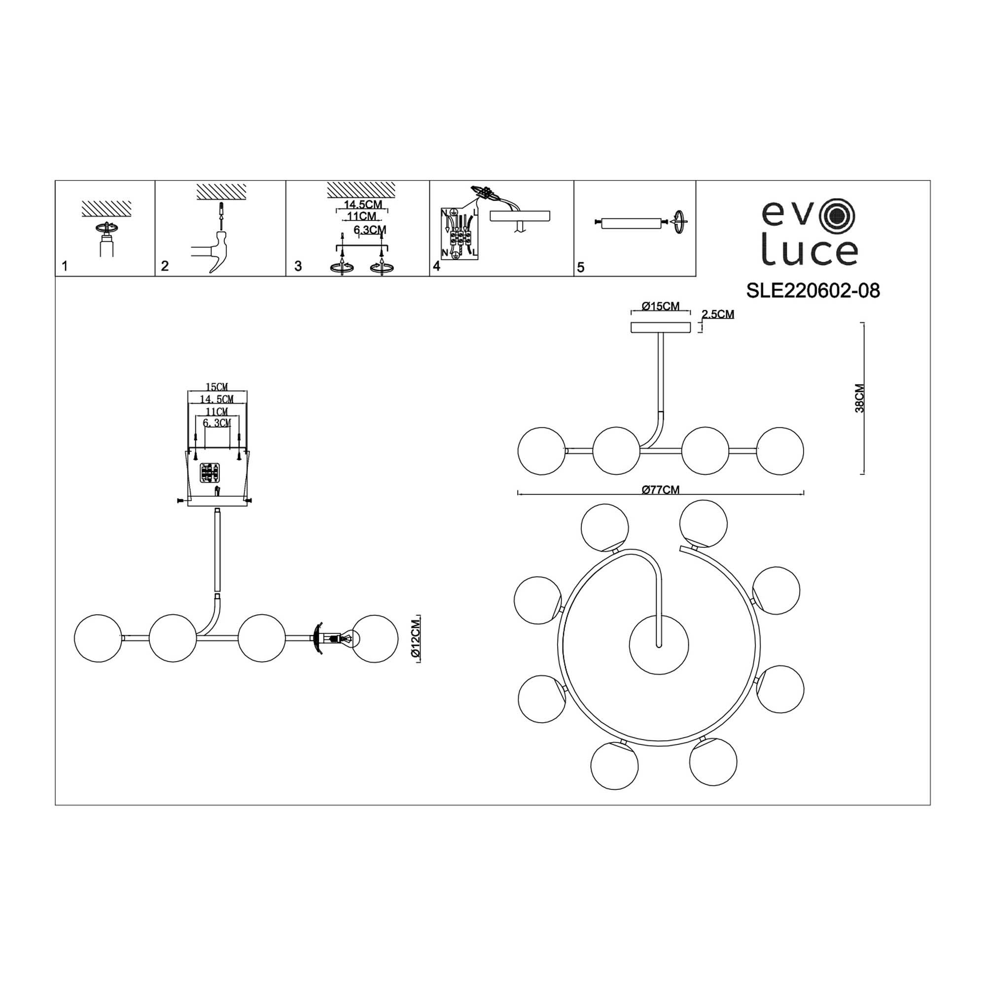 | Альтернативное название | SLE220602-08 Светильник потолочный Золотистый/Белый E14 8*40W CALABRIA |