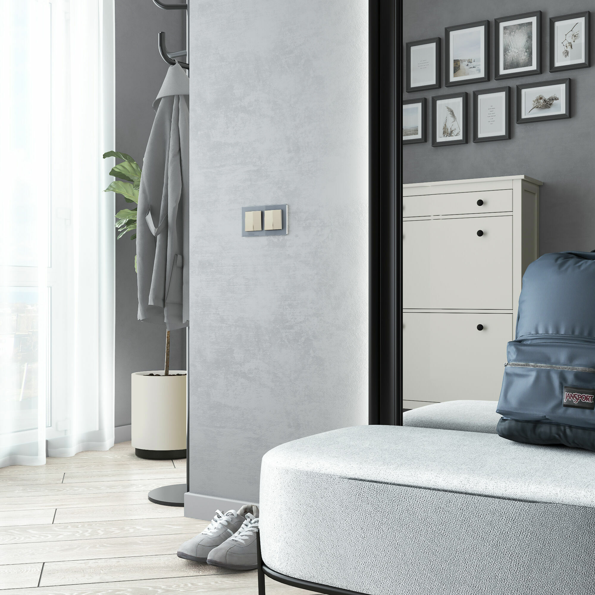 Механизм двухклавишного проходного выключателя оснащен матовой лицевой панелью. Матовая поверхность – это современный тренд, задающий стиль вашему интерьеру. Она не бликует, обладает бархатистой фактурой и тактильной мягкостью. Цвет айвори будет эффектно смотреться в любом интерьерном пространстве и гармонично сочетаться с любыми материалами.